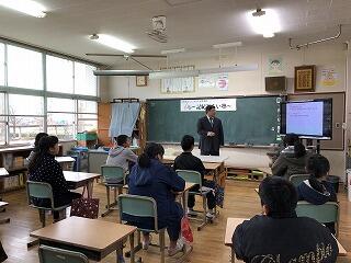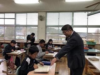まずは、12月11日に宮崎看護大学の大館先生に来ていただき、5・6年生を対象に都城にまつわる歴史と神話の話をしていただきました。これは、県の事業で進められており、宮日新聞にも載りました。霧島のこと、弥五郎どんのことが神話と関係があることにびっくり。大館先生の語りと映像に、子どもたちは引き込まれ、反応よく大変楽しい時間となりました。「日本書紀」を手に取ることができたのも貴重な体験でした。