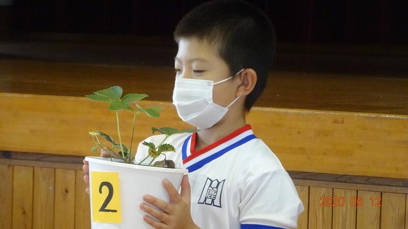 児童集会は、環境委員会の発表でした。校内でのゴミ集めの日や朝の旗上げ活動にちなんだクイズを出してくれました。花の名前についてのクイズでは、実物を見せながら出題していました。