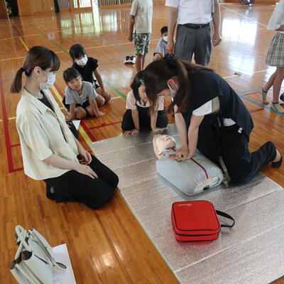 参観日・懇談会の後、「学校保健委員会」救命救急法講習会が行われました。都城消防局より講師の方に来ていただき、心肺蘇生法・AEDの使い方を教えていただきました。今回は、地域の方にも回覧でお知らせし、参加していただきました。学校玄関外側に設置となったAEDを急な事態の時に使えるよう、参加者全員が真剣でした。講習会の様子を参観した子どもたちの中には、「僕たちには難しいけれど、命を守るために、あんなに一生懸命にしているから大切なことだと思った。」と感想を教えてくれる子もいました。