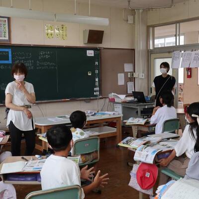 2年生は国語の学習にALTスフバトエンフタイワン先生が参加しました。「スイミー、ハングリー!」と会話がありとても微笑ましかったです。