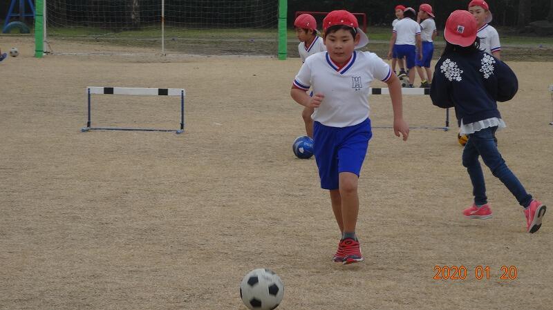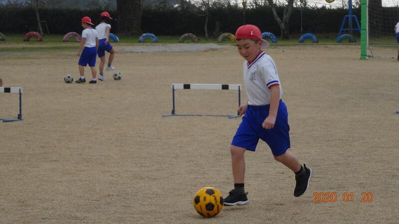 サッカーのシュートの練習を行っていました。自分で、ドリブルでボールを蹴りながらゴールまで持って行ってシュート。相手は、誰もいないのですがなかなか決まりません。その練習を何度も繰り返し行っていました。ボールを自由に操るのはなかなか難しいですね。