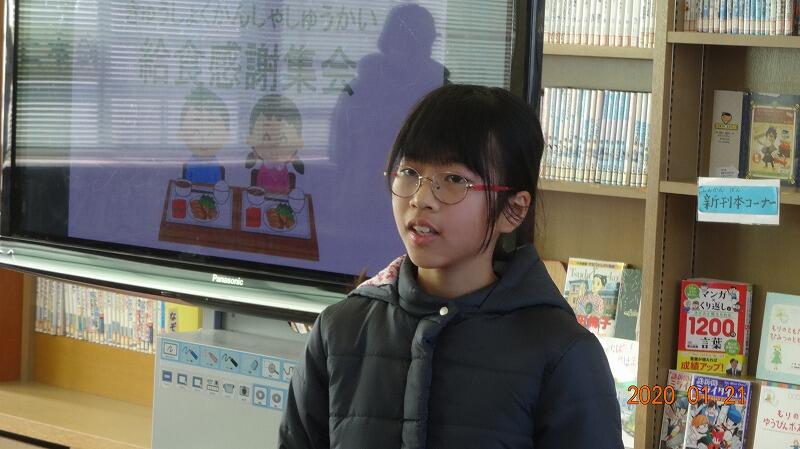 毎日食べている給食に感謝しようということで、給食感謝集会を行いました。事前に給食に関わっていらしゃる方々へ感謝カードを書きました。今日の集会では、栄養士の先生に給食ができるまでを紹介していただきました。クイズ形式でもあったので、子どもたちは真剣な表情で説明を聞いていました。最後に、栄養士の先生に感謝状を渡して終わりました。