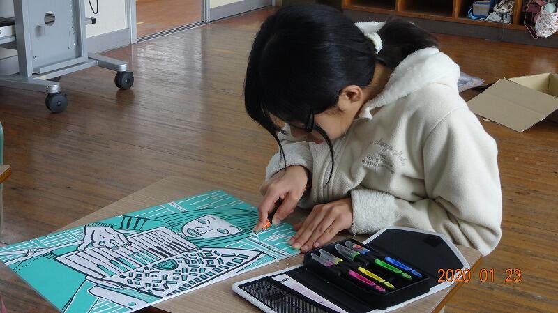 先日は3年生の版画作成の様子をお知らせしましたが、今日は5年生です。さすがに2度行っているので、彫刻刀の使い方もなかなか上手です。細かなところも、上手に表現できています。印刷用紙も、依然と違いカラーの作品に仕上げることができます。出来上がりが楽しみです。