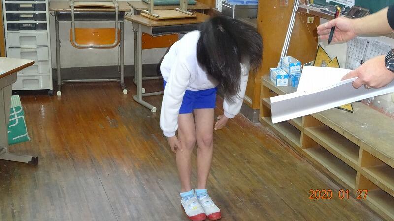 子どもたちの柔軟性を知るために、ストレッチの測定を行いました。①床からの立ち上がり②かかとをつけたまま、しゃがみ込むことができるか③おじぎ測定 以上3種類を測定しました。毎日数回でも継続することで柔軟性は向上します。やりかたは、子どもたちがしっています。家庭でもやってみて下さい。