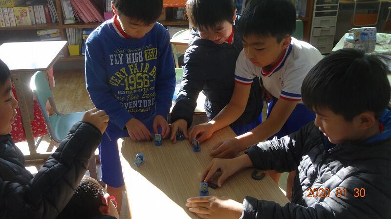 子どもたちにとって「じしゃく」はとても興味深いものです。引きつけられたり、しりぞけあったりしてなんとなく不思議なものです。そして、方角まで教えてくれます。じしゃくを使っていろんな活動を楽しみました。