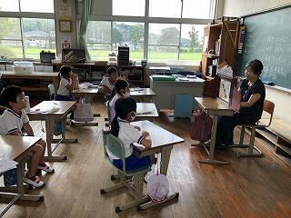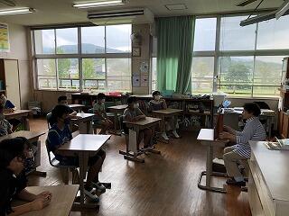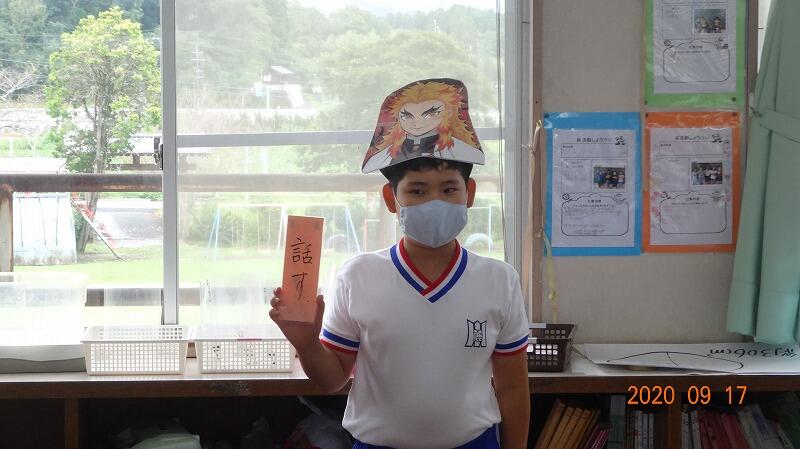 5・6年生が国語の授業で尊敬語について学習していました。一人一人がキャラクターのお面をかぶり他の人になり、その人にどのように言葉掛けをしたらよいか実際に呼びかけながら学習していました。正しい言葉違いなかなか難しいです。