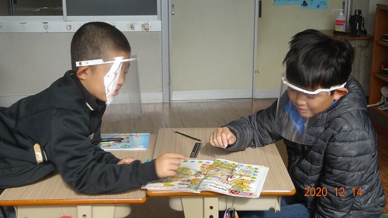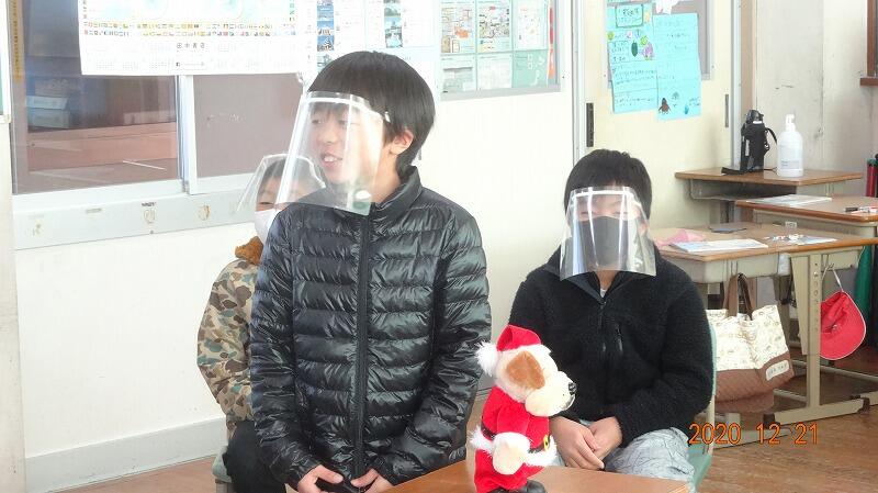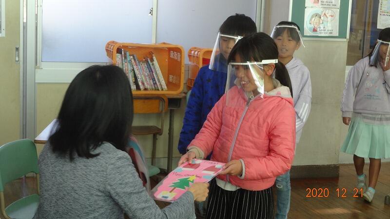 3・4年生は、外国語活動の時間にALTの先生といっしょにクリスマス会を楽しみました。クリスマスにちなんだ単語を使ってフルーツバスケットをしたり、クリスマスカードの贈り物をしたりして楽しい時間を過ごしていました。