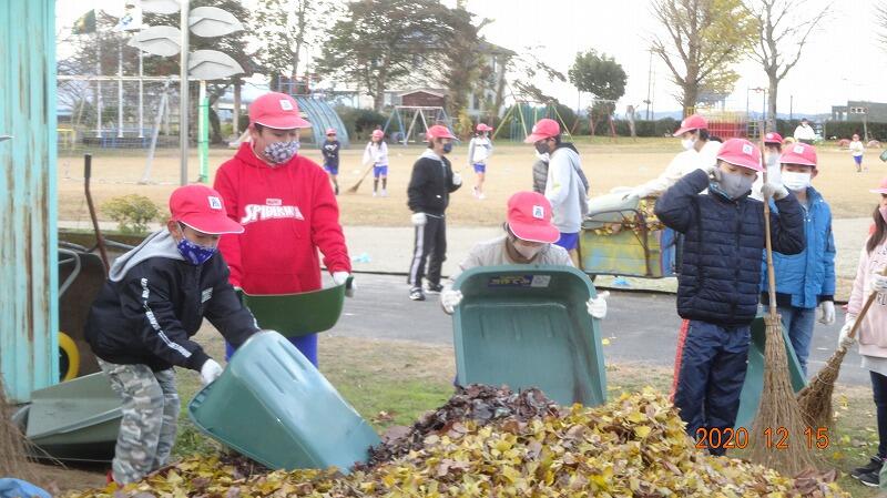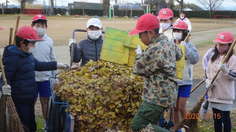 今朝は寒い朝になりましたが、子ども達は元気よく朝のボランティア活動に取り組んでいます。イチョウの葉もほとんど落ちてしまいました。校庭には、多くの落ち葉がありそれをみんなで集めました。
