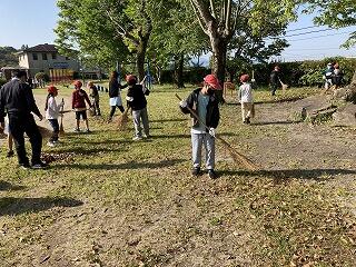 毎週、火曜日は、全校児童で朝のボランティアを行っています。今日は、落ち葉掃きをみんなで行いました。