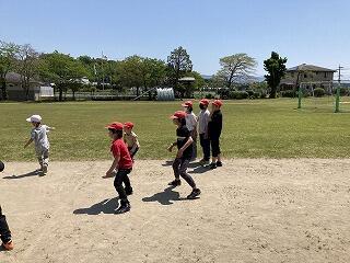 1年生から6年生までの全児童で全校体育を行いました。ファミリー班ごとにみんなで楽しく体を動かしました。