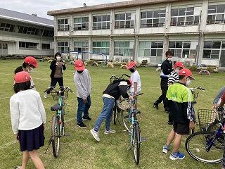 都城ドライビングスクールの方々を講師としてお招きして交通安全教室を行いました。1・2年生は、横断歩道の渡り方を中心に、3~6年生は、自転車の乗り方を中心に学習しました。