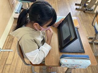 麓小にも一人一台のパソコンが届きました。算数で分度器の使い方を動画で見たり、漢字の練習をしたり、ローマ字入力の練習をしたりと頑張っています。