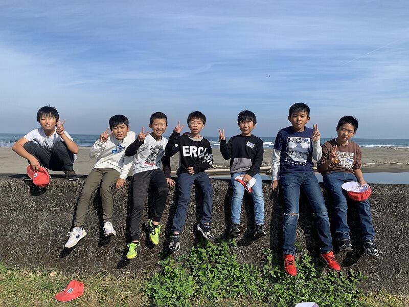 サイクリング中の堤防で全員揃って記念撮影!!