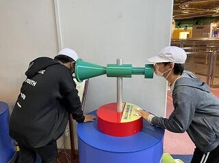 科学技術館での見学の様子です。これからプラネタリウムの見学です。
