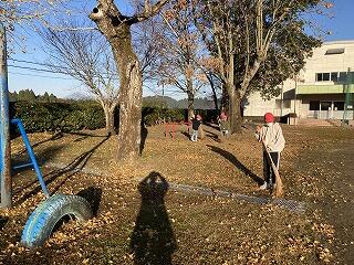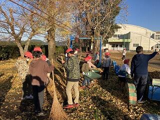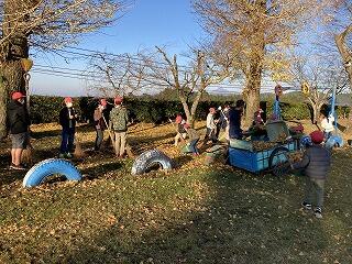今朝のボランティアは、イチョウの葉の落ち葉掃きでした。大量の落ち葉を一生懸命掃いています。