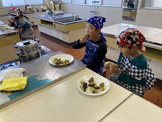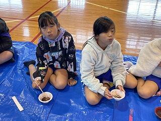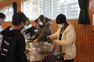 12月16日(木)の持久走大会の後に、ぜんざいのふるまいがありました。今年も麓ボランティアの会の皆さんに朝から家庭科室で準備してもらいました。