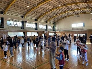 これまでは学級ごとにレクレーションを行っていましたがPTA会長の発案で親同士や子供同士、親子の交流を図るために全校でレクレーションを行うことになりました。