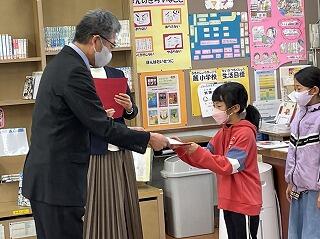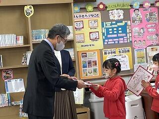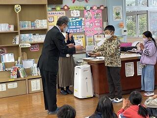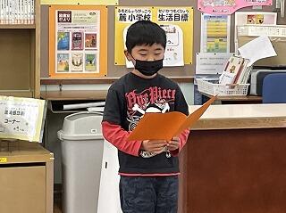 12月24日(金)の朝に第2学期の終業式が行われました。児童の作文発表や校長先生の108のお話、多読賞や読書感想画の表彰などありました。
