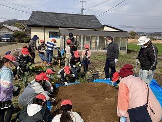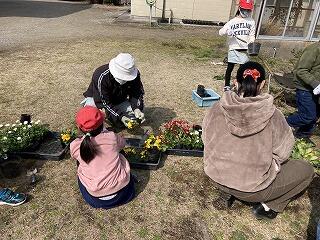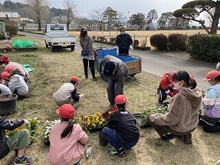 2月15日(火)5時間目に地域のボランティアの方々の協力を得て200鉢の花の苗の植え替えを行いました。卒業式や入学式をたくさんの花で飾れるようにみんながんばりました。