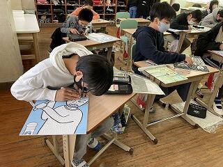 今、5・6年生は、図工で版画を行っています。一人一人の今年の思い出のシーンを版画にして制作しています。出来上がりが楽しみです。