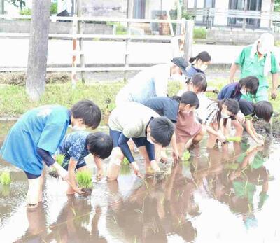 今日は「麓っ子米」の田植え活動でした。地域協力者の方々に田植えの仕方を教わり、一緒に植えました。最初は、冷たい田の水に驚きの声をあげていましたが、慣れてくると植えるスピードが速まりました。秋には黄金の穂がこうべを垂れるのが楽しみです。田植えの準備など、協力者の方々がたくさん支えてくださっています。いつもありがとうございます。