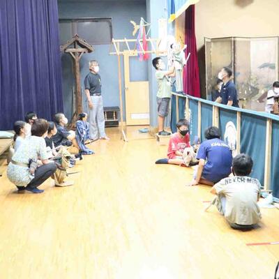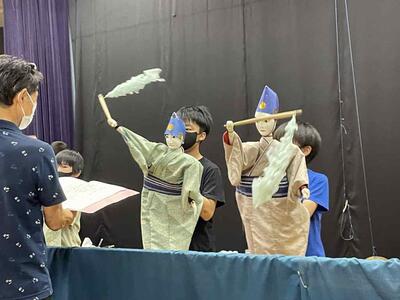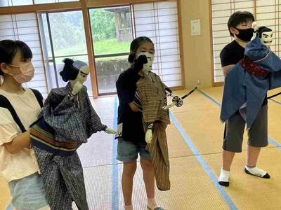 24日(金)は5・6年生の人形浄瑠璃伝承活動が人形の館で行われました。今回も保存会の方々に教わりました。話に合わせ、人物(人形)の気持ちを表すような動きをアドバイスしてくださいました。人形を高く上げる姿勢を保たなければいけません。5・6年生はとても頑張っています!