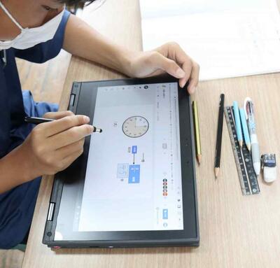 5・6年生は家庭科の掃除についての学習でした。汚れた場所に適した掃除用具を使って掃除をした報告を行っていました。タブレットで撮影した写真に文字を記入し、分かりやすい発表を考えていましたよ。