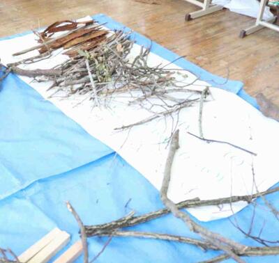5・6年生の図工の授業に学習ボランティアの方が協力してくださいました。木や針金、空き缶を使って、創造力を働かせ、造形活動を行いました。それぞれの家庭で準備した材料に加え、校庭の木の枝も使いました。また、学校の近くの株式会社KASUGA様から木材の提供をしていただきました。たくさんの材料から、何を作ろうかなと考えるのも楽しい時間でした。どんな作品が出来上がるのか楽しみです。