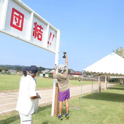 昨日は、地域の方々、PTA保護者の方々、3~6年生、職員で本日の運動会の前日準備が行われました。地域の方々と保護者の方々が次々と大掛かりな作業を手際よく準備してくださりました。大きな大きな力に感謝の気持ちでいっぱいです。立派な入場門、鮮やかな万国旗、もうすぐ始まる運動会を盛り上げてくれます。