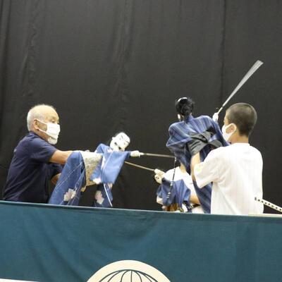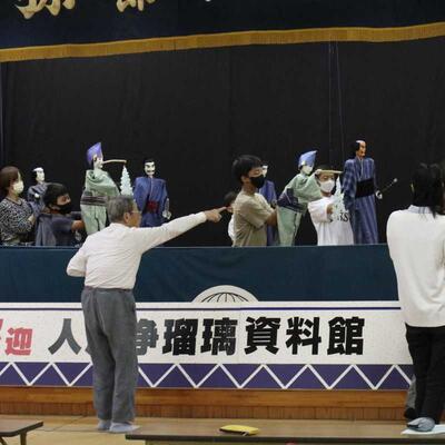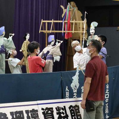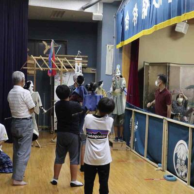 5・6年生は人形浄瑠璃伝承活動でした。今日は5名の保存会の先生方に教えていただきました。「語りに合わせて、人形が生きているように動かす 滑らかな動き 振りをそろえる」などなど たくさんのアドバイスをいただきました。保存会の方の人形の操りを参考に学ばせていただいています。
