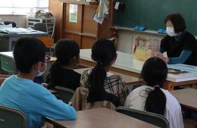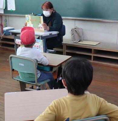 読み聞かせボランティアの方による読み聞かせの時間でした。紙芝居、絵本・・・お話の中に歌があったり、ボランティアの方と子どもたちとのやりとりがあったり、いつものことながら、本の世界に惹きこまれていました。毎回、子どもたちの喜ぶ姿が見たいと、読む本を選んで来てくださります。次はどんな本を読み聞かせして下さるか、楽しみです。読み聞かせボランティアの方々、いつもありがとうございます。