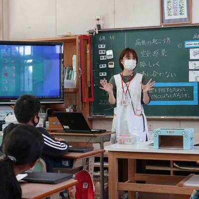 5・6年生の保健の学習です。養護教諭も一緒に学習をしました。特別な液を手に付けて普段通りの手洗いを行い、ブラックライトに手をかざして白く浮かび上がった部分が、手洗いの不十分なところです。5・6年生は手洗いをしっかりと行うために、自分の手をタブレットのカメラで撮影し、どのような手洗いをすれば、病気の予防につながるか、一人一人で考えるようにしました。これから、水が冷たくなり、手を洗うのが億劫になりがちです。感染症の流行が心配な季節でもあります。今日の学習が、自分の身体を守ることにつながりますね。