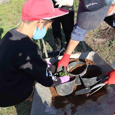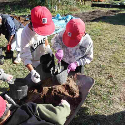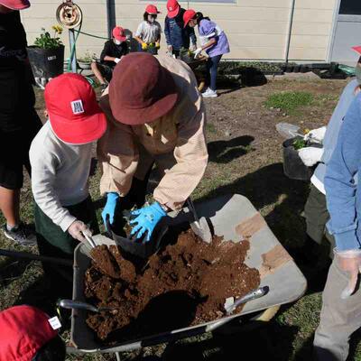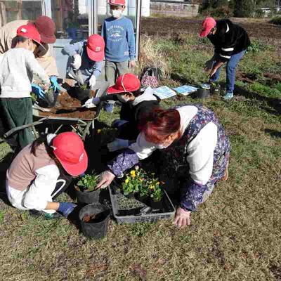 自然を愛し大切に育てる心を育むこと、そして、育てた花々で3月の卒業式、4月の入学式をお祝いすることをめざし、一人5鉢運動の花の苗植えの活動が行われました。地域ボランティアの方が8名来て下さりました。花の苗を小さなポットから大きなポットへと植え替えしました。これから、育っていくのを楽しみに、優しく花のお世話をしてくれるでしょう。ボランティアの方々、短い時間でしたが、お時間を割いて下さり本当にありがとうございました。