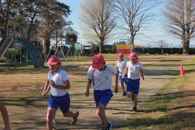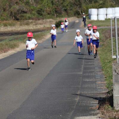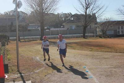 霜が降りる寒い朝でした。少しずつ気温が上がり始めた2校時に持久走大会が行われました。自己記録更新に向けて、スタートから力が入る子どもたちでした。お家の方や地域の方の応援がパワーとなり、いつも以上のハイペースで駆け抜けていました。グループホーム城山苑の皆さんも「がんばれ」の幕とともに応援をしてくださいました。参加者全員が最後まで走りきることが出来ました。