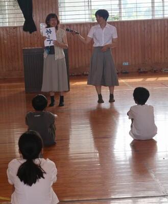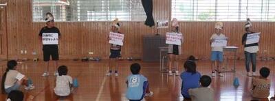 また、放送・図書委員会による劇が行われました。「7月月目標:計画的に学習しよう」について、夏休みの宿題の取り組み方を例に伝えてくれました。計画的に宿題や学習をすすめ、夏休み最後に頭をかかえることがないように・・・おもしろおかしく、とても分かりやすかったです。