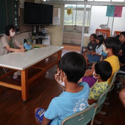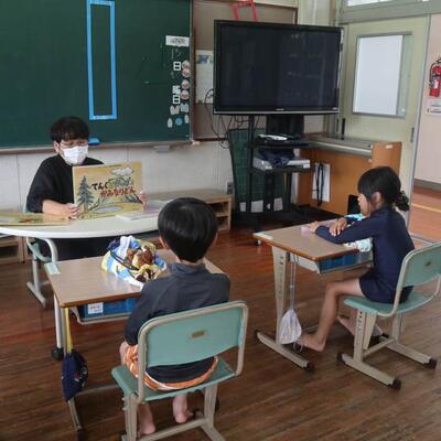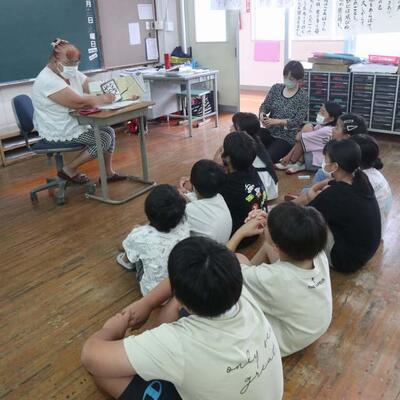 7月の読み聞かせが行われました。ボランティアの方々が子どもたちのことを考えて選書して下さった本の読み聞かせは、いつもお話の世界にいざなってくれます。今回は、紙芝居の他に、美しい色の絵本の読み聞かせもありました。また、牛乳パックを再利用した、手作りパラパラ絵本も紹介していただきました。これまで以上に、ボランティアの方とぐっと近づいたひとときでした。読み聞かせボランティアの皆さまありがとうございました。