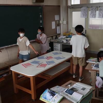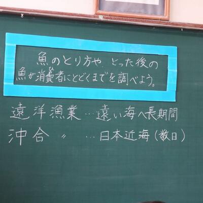 5・6年生は、社会で漁業について学習しています。今日は、沖合漁業について学習しました。漁船団で魚を追い込んだり、網で捕獲したりする流れを役割演技して理解につなげました。力を合わせて漁をする方法を知りました。