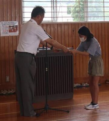 1学期終業式が行われました。2名の作文発表では、1学期の思い出や2学期に頑張りたいことを伝えてくれました。校長先生のお話、生徒指導の先生、養護教諭の先生のお話がありました。また、多読賞授与がありました。夏休みを元気で過ごして、楽しい思い出を作ってほしいです。