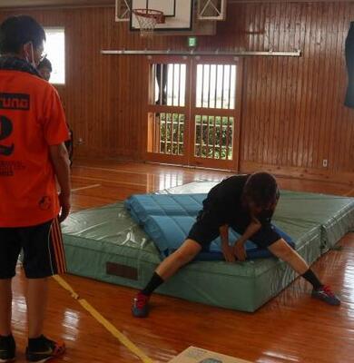 小林秀峰高校の永野先生にマット運動の指導について教えていただきました。前転や後転ができるようになるためにポイントを体操専門の先生に教えていただく貴重な時間でした。場づくりの工夫等とても勉強になりました。2学期は、永野先生に5・6年生の授業もしていただきます。