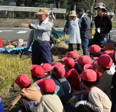 今日は稲刈りでした。8名の学校協力者の皆さんとともに稲刈りをしました。今年は豊作!?のようです。稲刈りが初めての1年生もかまを使って刈りました。刈った稲を干すために、藁をねじって稲を束ねました。みんなで協力して作業をすることができました。ボランティアの皆さまありがとうございました。次は脱穀です。