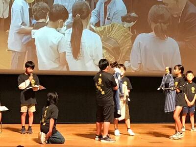 10月15日(日)新富町文化会館で行われました宮崎県子ども会創立50周年記念式典にて、麓小学校の人形浄瑠璃伝承活動の紹介発表をしました。人形浄瑠璃保存会の前田会長とともに舞台に立った5・6年生。お客様の前で、インタビューを受けたり、浄瑠璃の一部分を披露したりしました。保存会の方に支えられて行っている人形浄瑠璃伝承活動について、来場された方々に伝えることができました。大きな舞台に立つ経験をいただきました。宮崎県子ども会の皆様50周年おめでとうございます。そして、本当にありがとうございました。