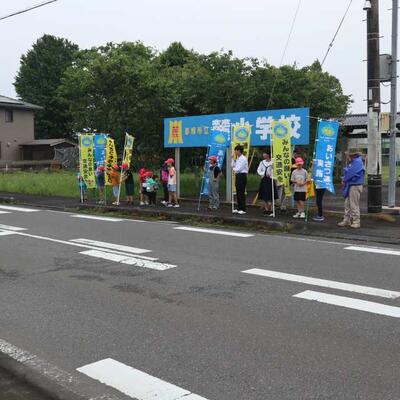毎年恒例となった小中合同あいさつ運動です。児童数が少ない麓小の横断歩道は、渡ってくる児童が少ないため、あいさつを交わす回数がもちろん少ないです。今年は、「車の運転手さんにも元気にあいさつしよう!」という目標で、交通量の多い中、運転手さんに向かって「おはようございます」と声を出しました。何度もあいさつしていると、元気な「おはようございます」が自然と出るようになっていました。中学校3年生も授業が始まる前にかけつけ、小学生と一緒にあいさつ運動を行ってくれました。山之口中学校はどんなあいさつが広がる学校でしょう。次回は、中学生に様子をたずねてみようと思います。