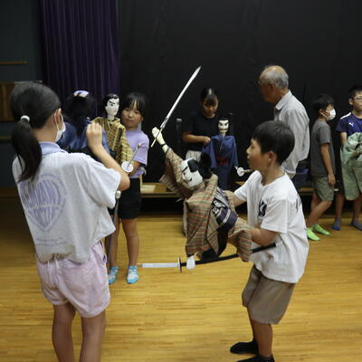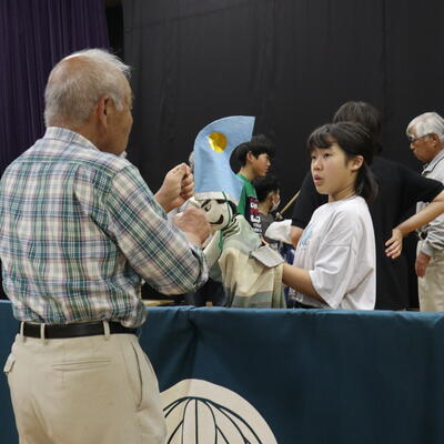 本年度の人形浄瑠璃伝承活動がスタートしました。開講式では保存会会長のお話や保存会の方々との顔合わせがありました。昨年度人形浄瑠璃を経験した6年生も、語り役以外は、新しい役に挑みます。そして、5年生は人形に初めて触れました。どのように人形を動かしているのかを知り、へえ~と感心しきりでした。第1回目の伝承活動でしたが、ぶっつけ本番で合わせてみようとなり、演目の半分まで行いました。みんな大体の動きが分かっていました。これまでの先輩方の公演を観ていたからです。さすが麓地区の伝承芸能です。子どもたちも頑張る気持ちいっぱいです。