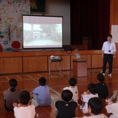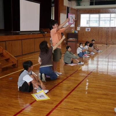 6月の全校集会は、校長先生がどんどんよくなっている元気な朝の挨拶の様子をビデオに撮って全校児童に紹介してくださりました。自分たちの挨拶を動画で見て、元気のよい挨拶は周りの人も元気にすることがよく分かりました。また、保健給食委員会のみなさんは、「歯をたいせつにしよう」という6月の月目標に関して、歯にまつわるクイズを出してくれました。