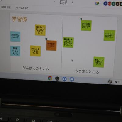 3・4年生は日頃の係活動について、振り返りと改善をPCで行いました。係ごとにPCの付箋を使って、自分たちの考えを出し合い、シートに集めます。友だちの意見を見ながら、さらに自分の考えを深めていました。