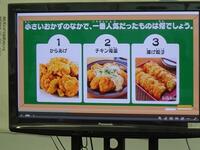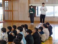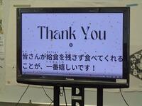 山之口給食センターの栄養教諭の黒木英子先生をお招きして、給食感謝の集会を開きました。会では、黒木先生から「給食センターの方々の仕事」について映像を見せていただきました。給食の調理の中で「材料は3回洗います。」「調理の温度を測ります。」という場面がたくさんあり、その作業の丁寧さや細かさに、びっくりしました。その後、委員会児童による給食クイズに挑戦しました。「小さいおかずの人気メニューは?・・・1位揚げ餃子、2位唐揚げ」「センターの全部のメニューの数は?・・・約600種類」どれも意外と難しかったです。最後に、児童全員からのお礼のメッセージを渡しました。