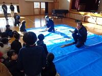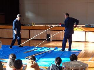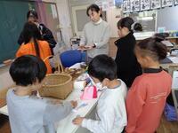 3.4年生が都城大弓の弓師の方2名をお招きして、体験学習を行いました。弓師は、南崎寿宝さんと楠見蔵吉さんで、お二人とも都城市早鈴町で弓製作所のお仕事をされています。
