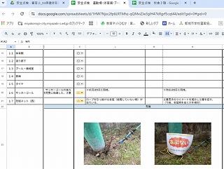 毎月行っている保健体育部の計画による校内安全点検を、今年度からデジタル化しています。先生方は、数名に分かれ職員用端末を持って校内を移動しながら、点検そしてチェックしていきます。点検で修理や不具合のある場所が見つかった場合は、写真をとって点検シートに貼り付けます。