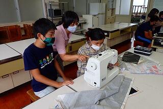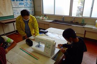 10月22日、23日 高学年が家庭科の時間にミシンを使っての物づくりに取り組みました。6年生はエプロン作りに、5年生はナップザック作りに挑戦しました。ミシン操作の分からないところは、支援ボランティアの方々に教えていただきながら頑張りました。