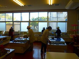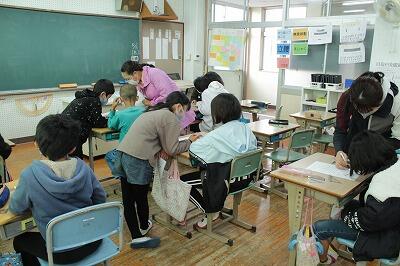 10月27日 支援ボランティアの方々にご協力いただき、2・3年生の芋の収穫祭に向けて、子どもたちが先日掘った芋を使って「がね」を作っていただきました。